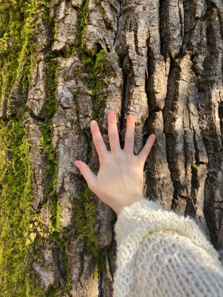 Trees exist fully in the present moment. When you place your hand on one, it can naturally pull you into that same state—quieting your thoughts and bringing awareness to the now. This is why it can feel almost meditative without trying.